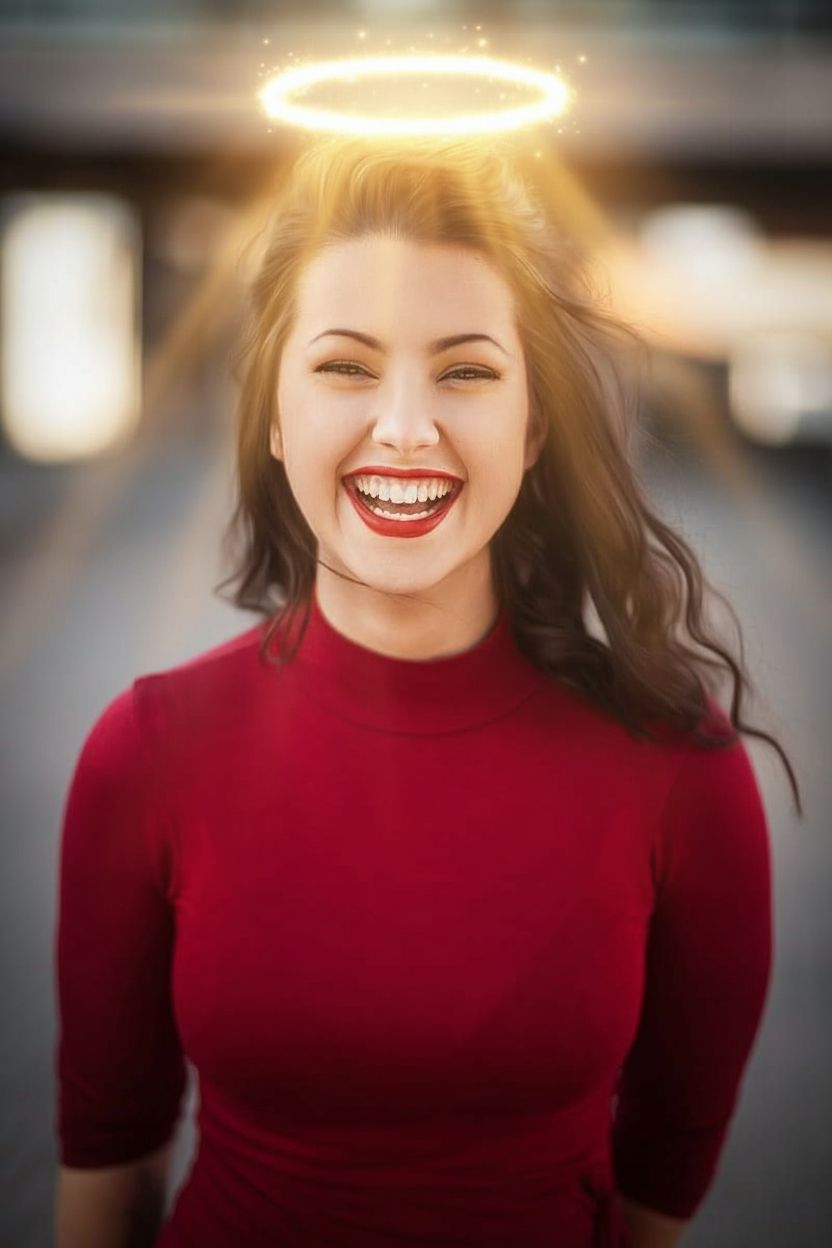 Add a divine glowing halo above your head for an angelic, ethereal look. The soft golden light radiates naturally around your avatar, making it perfect for spiritual, fantasy, or simply standout profile pictures. **Prompt used:** Add a glowing golden halo floating above her head, soft ethereal divine light emanating from it, angelic glow with warm golden light rays, same face and expression preserved