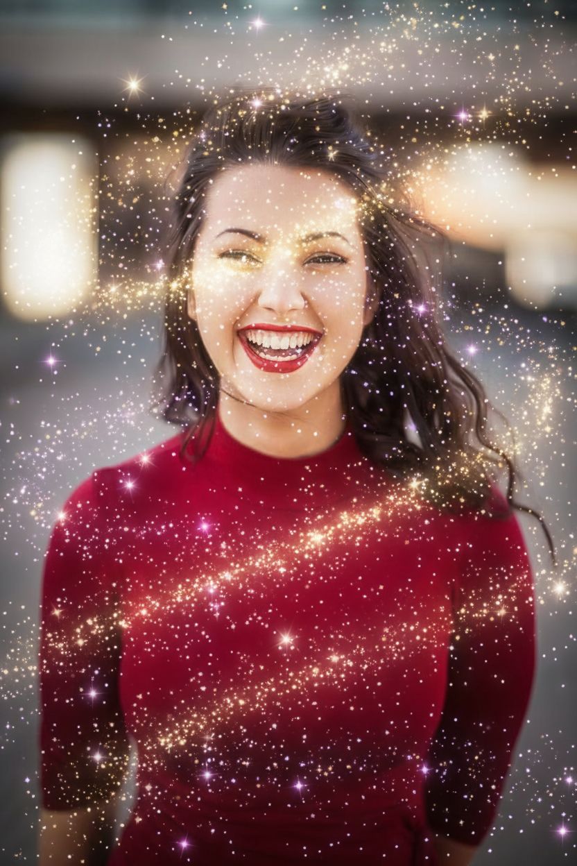 Surround your avatar with a magical aura of glowing sparkles and stars. Golden and purple particles float gracefully around your portrait, giving it a mystical, fairy-tale quality that stands out in any feed or profile. **Prompt used:** Surround her with magical sparkle particles and glowing stars, mystical fairy-tale aura, soft golden and purple sparkles floating around her head and shoulders, same face preserved